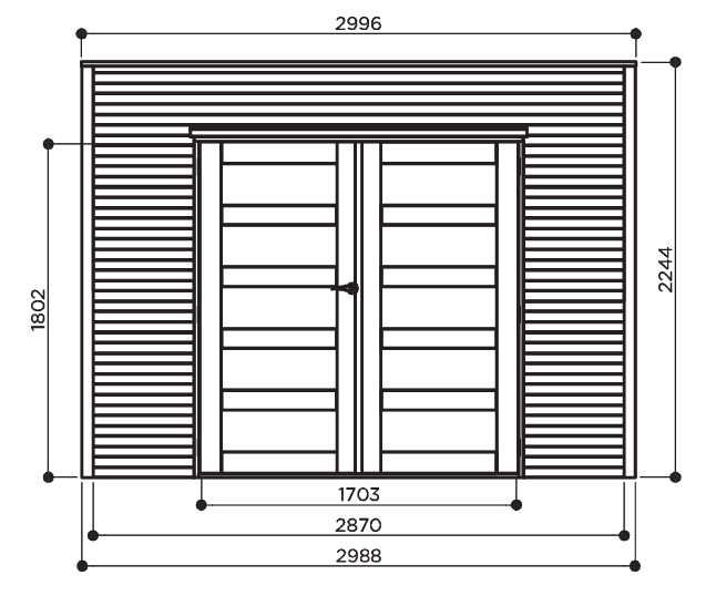 Breedte 1780 mm. Diepte 690 mm. Hoogte achteraan