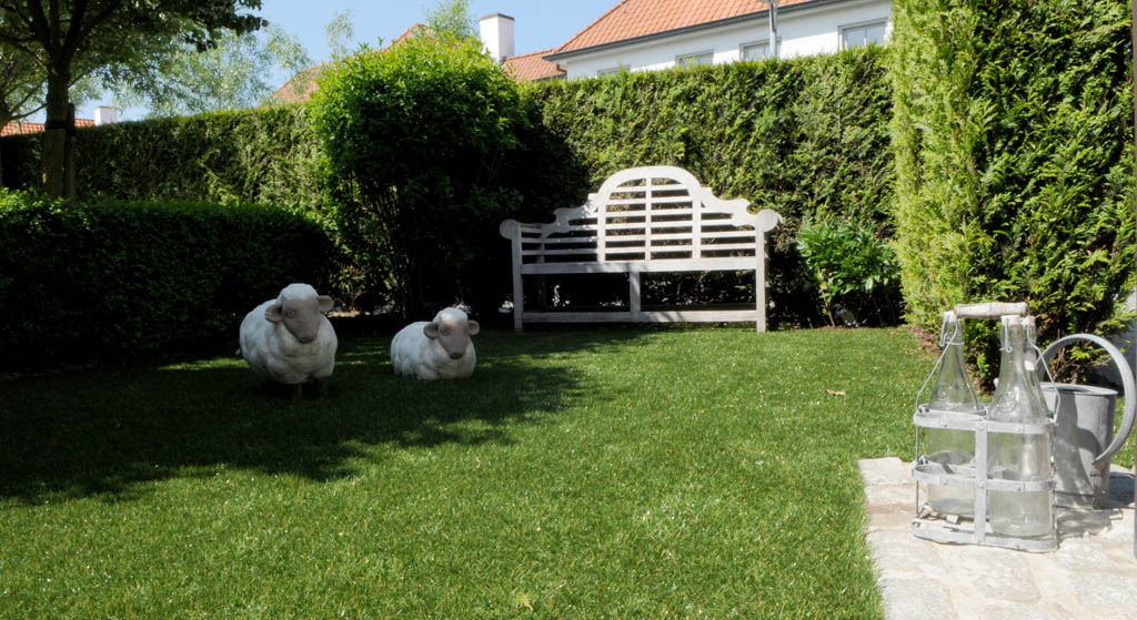 Wij helpen je graag met de juiste keuze. Ons kunstgras is uv-bestendig, waterdoorlatend en voelt zacht aan. Dankzij de realistische vezelstructuur oogt het net als echt gras — zonder maaien, bemesten of sproeien.