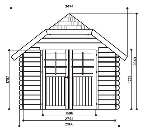 | Opbouwsysteem | Blokhut bouwsysteem waarbij houten profielen met tand en groef op elkaar worden geplaatst. |