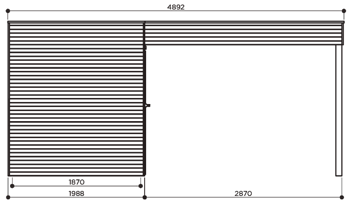 Wand die op elke open zijde van de overkapping kan geplaatst worden