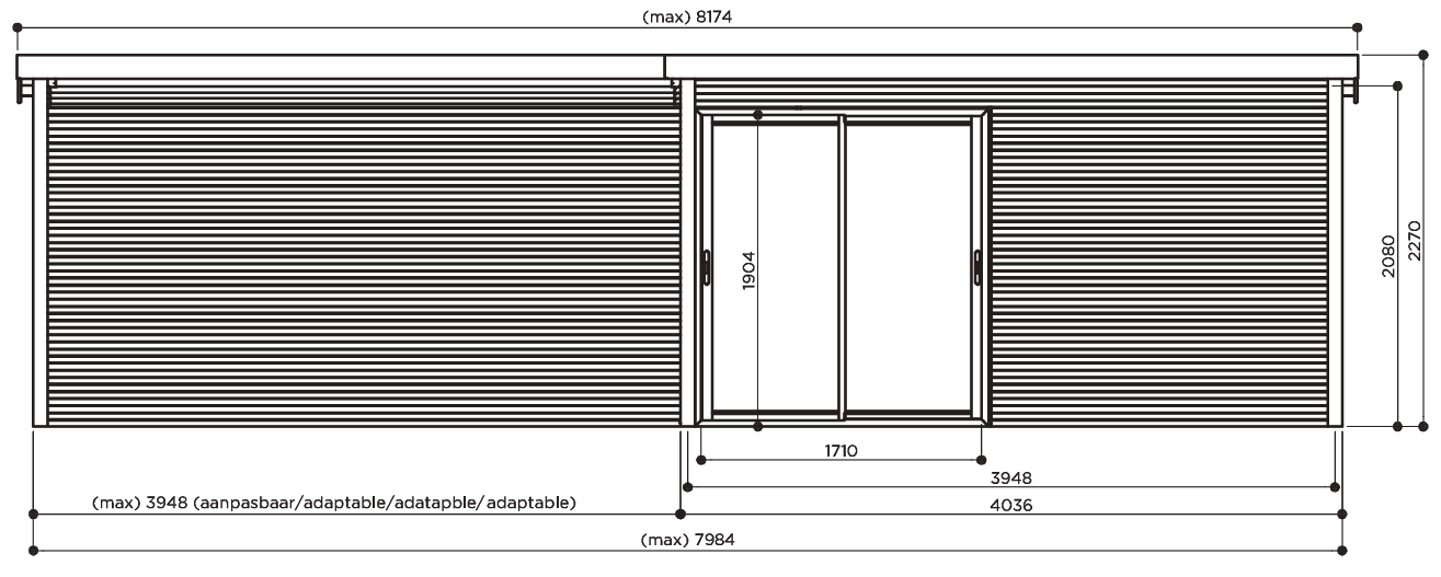 Breedtemax. 3948 (aanpasbaar) x 4036 mm